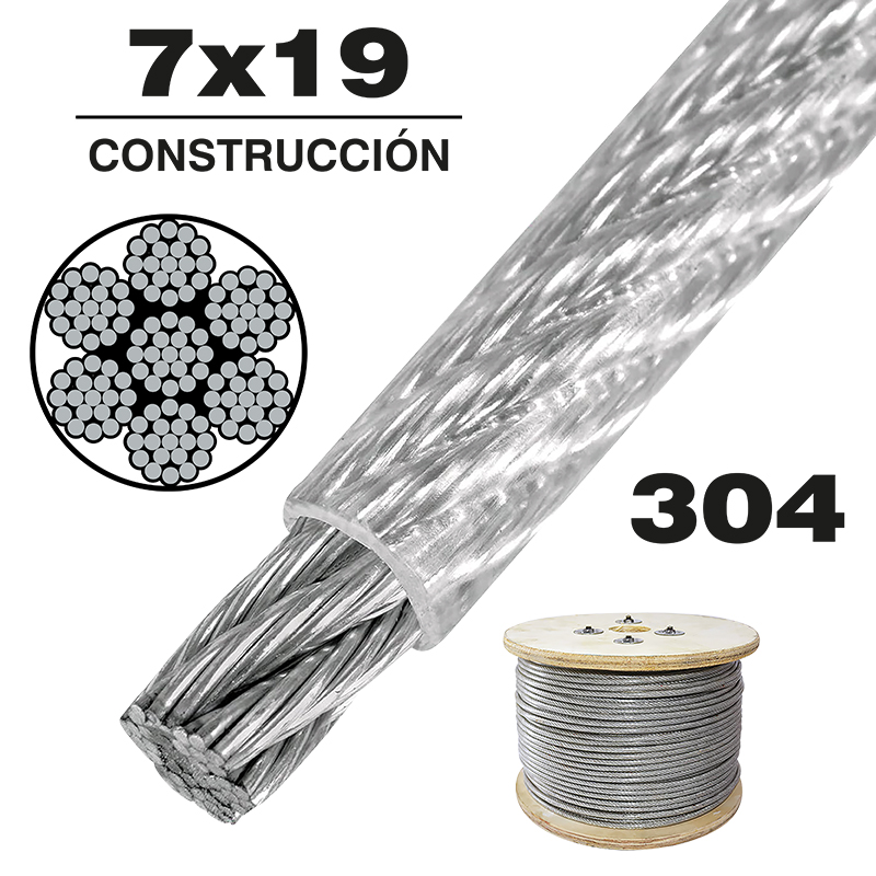 CABLE DE ACERO INOXIDABLE CON PVC 7×19 1/8-3/16″ y 600 m